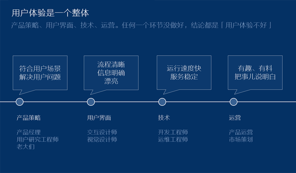 回到互聯(lián)網(wǎng)產(chǎn)品上來,我以前曾經(jīng)總結(jié)過,影響互聯(lián)網(wǎng)產(chǎn)品用戶體驗的主要有4個因素,這些因素其實都是需要設(shè)計的,這其中任何一個“設(shè)計”不合理,結(jié)論都是“用戶體驗不好”。它們分別是:產(chǎn)品策略、用戶界面、技術(shù)、運營。